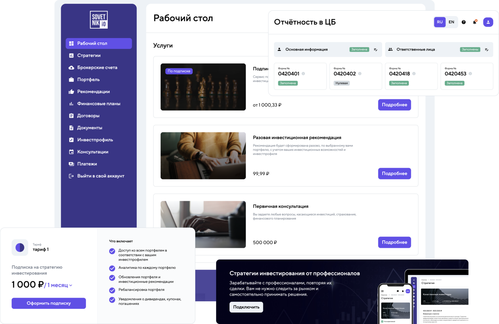 Сдавайте отчетность, выдавайте индивидульные инвестиционные рекомендации, хрантите данные в удобном формате с помощью нашего сервис